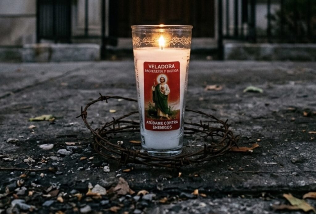 Una veladora acompañada de fragmentos de púas apareció este viernes frente al domicilio de un funcionario municipal de Cerritos, en la calle Matías de Ávila. El objeto, vinculado en la cultura popular a rituales de brujería, fue retirado por el propio afectado sin mayores contratiempos.