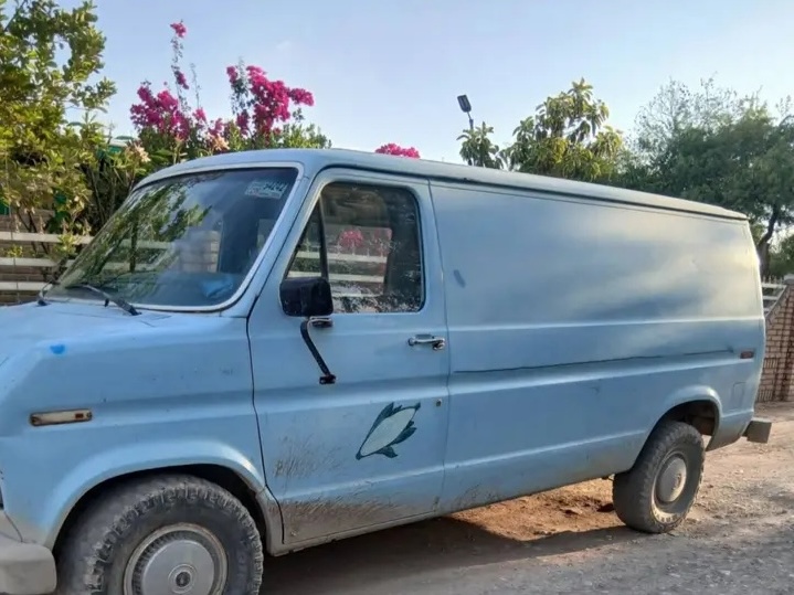 Circula con fuerza en grupos de WhatsApp y perfiles de Cerritos la imagen de la camioneta van azul cielo de modelo antiguo que atropelló al motociclista Raymundo sobre el nuevo camino a San Pedro de los Hernández. La evidencia fotográfica muestra las características distintivas de la unidad.
