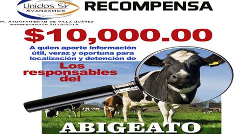 Ayuntamiento de Villa Juárez dará 10 mil pesos a quien proporcione pistas para dar con ladrones de ganado MARCO SERNA Con el fin de frenar el robo de ganado en…