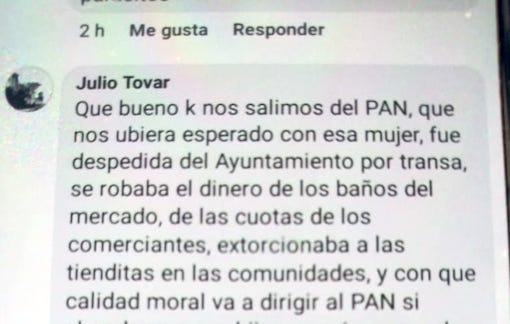 La presidenta del Comité Directivo Municipal del PAN en Cerritos, María Elena Jiménez Reyes, se ha convertido en el blanco de las críticas en redes sociales y en la prensa local, por su supuesta corrupción, desvío de recursos, extorsión y mala reputación. Varios usuarios de Facebook y el diario Zona Media han expresado su rechazo a la dirigente panista, quien suponen, pretende ser la representante local del partido en la próxima contienda política.