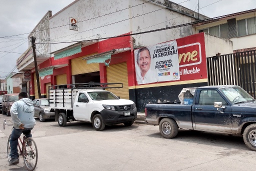 Molestia causó la “desaparición” de una lona que había sido colocada junto al comercio llamado “Materiales Almazán”.