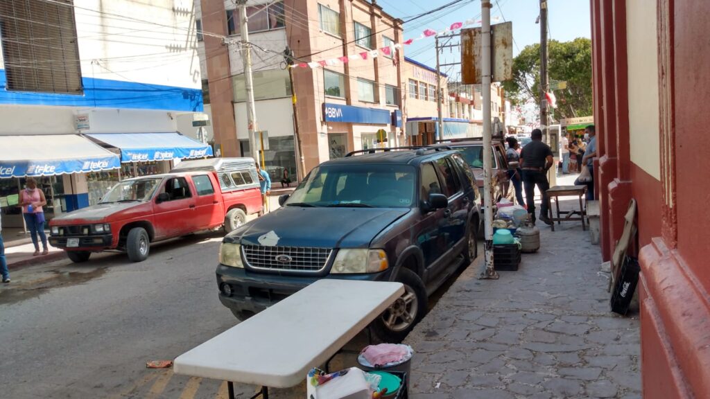 Comerciante mostró su enfado contra agentes de tránsito municipal, porque dijo, que a pesar de que está al corriente con sus pagos para utilizar el suelo, el lugar no se respeta y seguido encuentra vehículos estacionados.