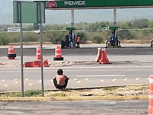 Una joven mujer fue captada por cámaras mientras estaba en una gasolinera, junto a la caseta de cobro de la súpercarretera estatal 75, en aparente estado de desorientación y padeciendo los efectos del intenso calor.