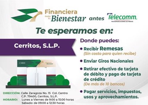 Financiera para el Bienestar te espera en Cerritos