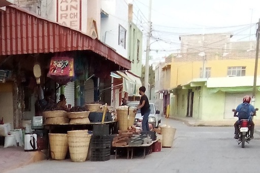 Observación han hecho vecinos que pasan frente a puesto de especias, al mirar que el negocio se ha extendido a media calle, obstruyendo la banqueta y la calle Pedro Antonio de los Santos sin la menor pena.