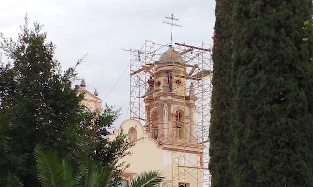 La Parroquia de San José, ubicada en la cabecera municipal de Villa Hidalgo, está siendo restaurada en la cúpula y el campanario, debido a los agrietamientos y goteos que presentaba por el deterioro de la antigüedad y por la última granizada que afectó al pueblo.