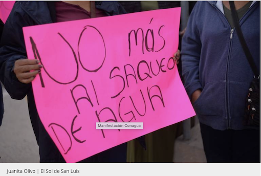 Los pobladores de Peotillos, una localidad de Villa Hidalgo, se manifestaron este martes frente a la Comisión Nacional del Agua, al sentirse afectados por la supuesta venta del agua a terceros, en específico a la empresa que construye la nueva autopista.