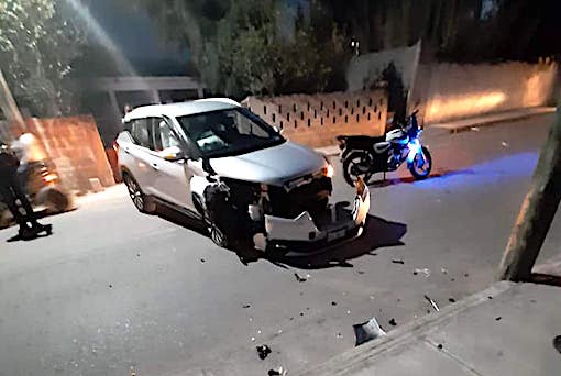 Camioneta chocada quedó atravesada sobre calle principal de Villa Hidalgo, y aunque los primeros reportes señalaban al conductor como una persona que forma parte de los antorchistas, antes de la media noche del domingo 25 de abril se desconocía el nombre del responsable.
