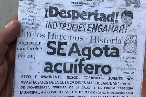 El sentir de un grupo de pobladores de Villa Hidalgo se aprecia en un ejemplar tamaño carta denominado “Insurgente Progresista”, donde las quejas se enfocan en la distribución del agua.