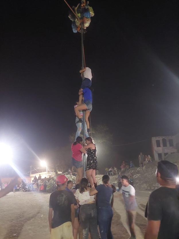 El barrio La Pila de Cerritos celebró su tradicional Palo Ensebado el pasado Sábado de Gloria, como parte de las festividades locales. En este evento, los participantes compitieron para alcanzar la cima del palo, buscando obtener el premio ofrecido al ganador.