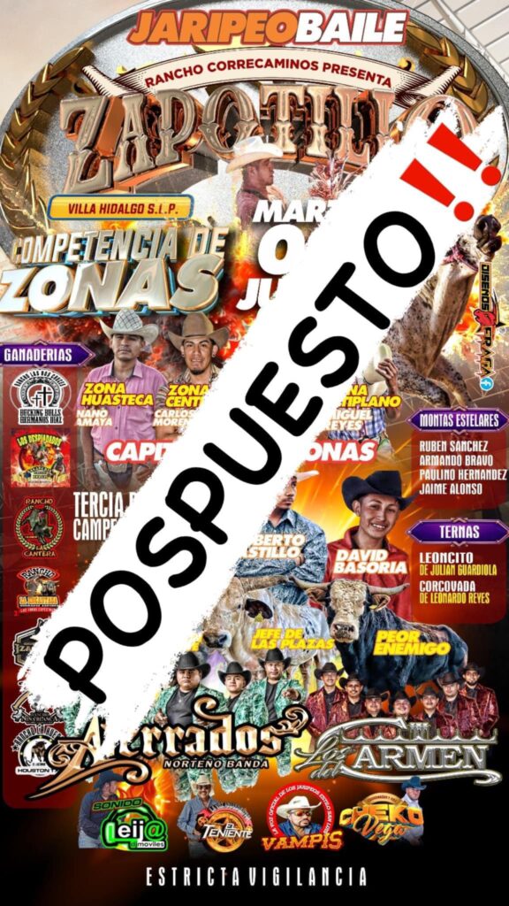 Debido a las inclemencias del tiempo, el esperado jaripeo baile en El Zapotillo, Villa Hidalgo, programado para el pasado martes 2 de julio, tuvo que ser pospuesto. El Rancho El Correcaminos, organizador del evento, anunció esta medida como una precaución para garantizar la seguridad de los asistentes y participantes.