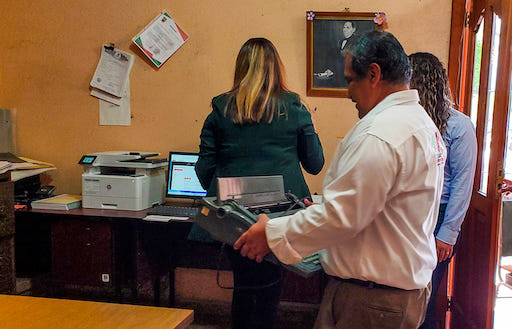 Gracias a las gestiones realizadas por el H. Ayuntamiento, el Registro Civil de esta localidad se modernizó y quedó enlazado con la plataforma estatal. El proceso, que se concluyó con éxito, permitirá a los usuarios realizar los trámites de manera más rápida y recibir en el mismo momento su acta de nacimiento con la Clave Única de Registro de Población (CURP).