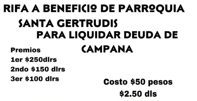 Adeudo por más de 150 mil pesos es el que enfrenta la Parroquia de Santa Gertrudis, por lo que han emprendido una serie de actividades para reunir la cantidad.