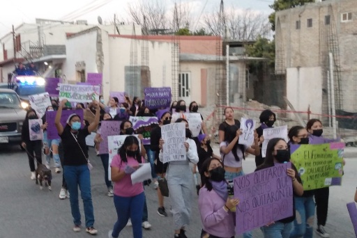 Algunas 80 mujeres marcharon por calles principales de Cerritos como parte de la conmemoración del 8M, Día Internacional de la Mujer.