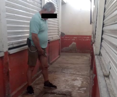 Hombre es captado orinando en pasillo del Mercado Municipal