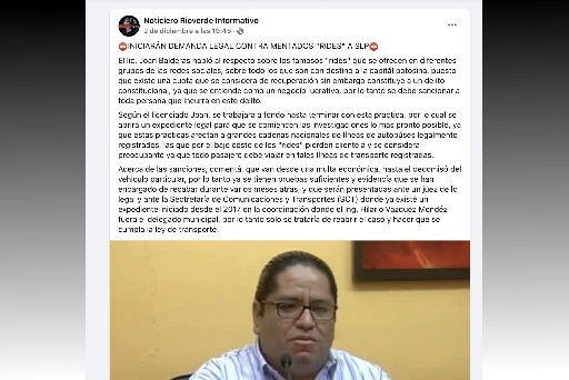 El lic. Joan Balderas habló al respecto sobre los famosos "rides" que se ofrecen en diferentes grupos de las redes sociales, sobre todo los que son con destino a la capital potosina, puesto que existe una cuota que se considera de “recuperación”.