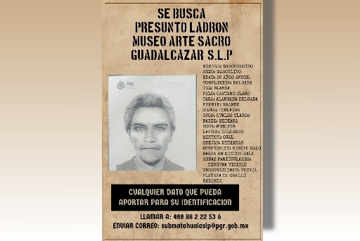 Habitantes de Guadalcázar difundieron imagen de presunto ladrón, quien el año pasado se habría llevado objetos valiosos del Museo de Arte Sacro.