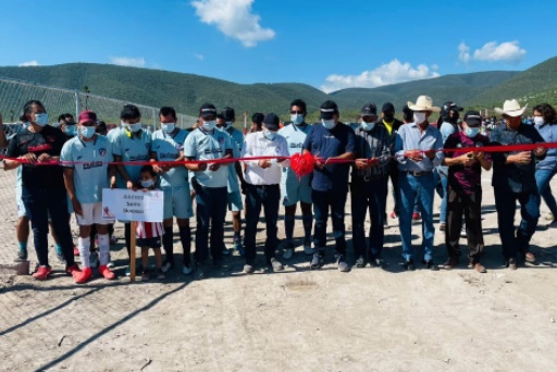 l Presidente Municipal de Guadalcázar, Lic. Juan Francisco Pérez Zapata hizo el corte de listón inaugural del cercado perimetral del campo de fútbol en la comunidad de Santo Domingo.