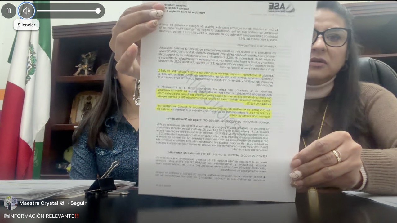 La información fue expuesta públicamente por la presidenta municipal Crystal Alva Venegas mediante un video informativo, en el que mostró el oficio oficial recibido y explicó que el requerimiento fue discutido formalmente en sesión de Cabildo celebrada el 12 de diciembre, cuando se detalló la existencia de 27 créditos fiscales relacionados con impuestos retenidos a trabajadores y no enterados al SAT.