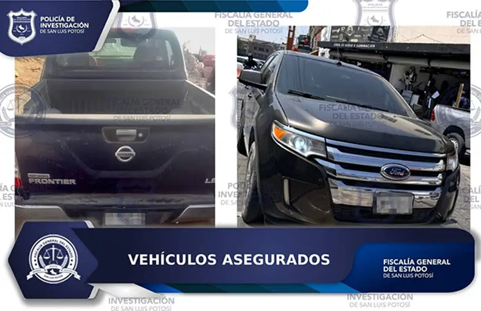 En un hecho distinto, pero dentro de las mismas acciones operativas, personal de la PDI localizó en la colonia Graciano Sánchez, en la capital potosina, un automóvil Ford tipo Edge, color café. Al verificar su situación jurídica, se estableció que estaba vinculado a una carpeta de investigación por robo calificado, motivo por el cual también fue asegurado.