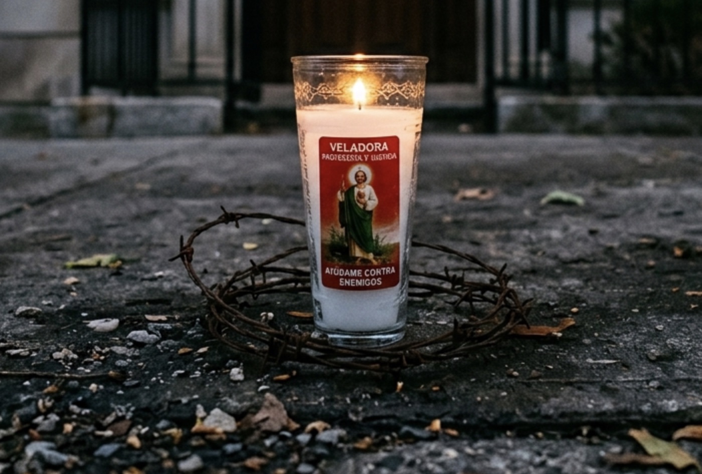 PLURINOMINAL | Esta mañana, vecinos de la calle Matías de Ávila de Cerritos se percataron de que frente al domicilio de un funcionario del Ayuntamiento había sido colocada una veladora rodeada de fragmentos de púas, objeto que en el imaginario popular de la región suele asociarse con prácticas de brujería o santería. El hallazgo generó comentarios entre quienes transitaban por el lugar.