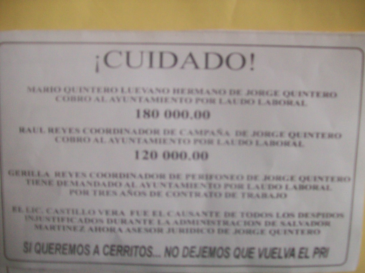 Así catalogan los priístas los volantes pegados en zonas estratégicas que se agregan a este comentario. «En Cerritos, las cosas arden». Nos leeremos pronto.