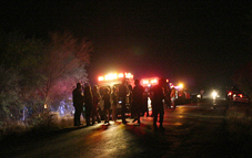 Policías estatales al mando del nuevo Comandante Margarito Contreras Almaguer, así como policías municipales de La Villa, esperan a personal de criminalística para mover la camioneta.