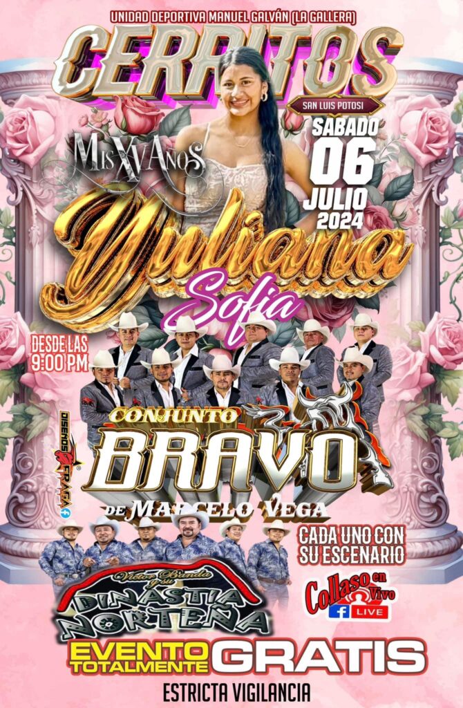 Cerritos se prepara para celebrar por todo lo alto los 15 años de Yuliana Sofía. Este sábado 6 de julio de 2024, la Unidad Deportiva Manuel Galván, conocida como "La Gallera", será el escenario de una gran fiesta abierta a todo el público.